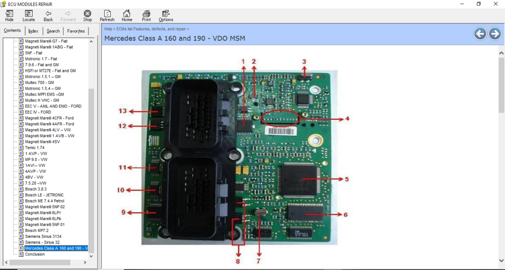 ECU Repair Helper E-Book, which contains the description and location of the component for many ECUs as well pinout for this component , common fault that you can encounter and how to fix it, and immo location